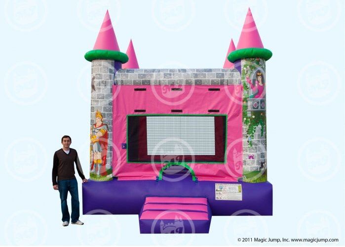 Magic Jump's beautiful Princess Castle is the entertainment home for all the beautiful princesses out there. This attractive pink and purple ride is wonderful for themed parties and is a great ride to get creative with role play activities. The Princess Castle offers plenty of space in a 13'x13' Bouncy Castle for up to five riders to enjoy at a time. It is compact and lightweight for easy transport and setup for rental operations and is crafted for maximum durability by Magic Jump. Approval under New Jersey and Pennsylvania state guidelines ensures this ride is safe for everyone to enjoy. Even exercise is fun inside the Princess Castle. A classic Bouncy Castle is fun and suitable for any occasion, include a Princess Castle to diversify your collection and cater to all sorts of themes.