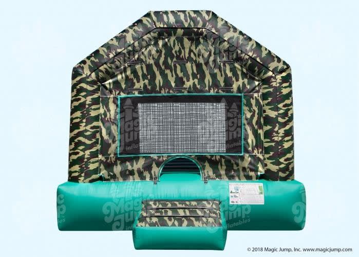 The Bouncy Castle Camo is designed with Magic Jump's unique camouflage color theme, but can also be customizable to your needs. It is a great ride to feature at any occasion, whether for boys or girls. Children can bounce, jump, hop, skip and run around to their heart's content in the Bouncy Castle Camo. As a 13'x13' Bouncy Castle, it can comfortably accommodate five riders at a time. The Bouncy Castle Camo is approved for safety under New Jersey and Pennsylvania state guidelines and is crafted for maximum durability to ensure years of use and service. It is a great product to feature in rental inventories as its compact and lightweight frame allows for easy transportation and setup. The Bouncy Castle Camo is a great source of fun-filled exercise and entertainment that is sure to satisfy.
