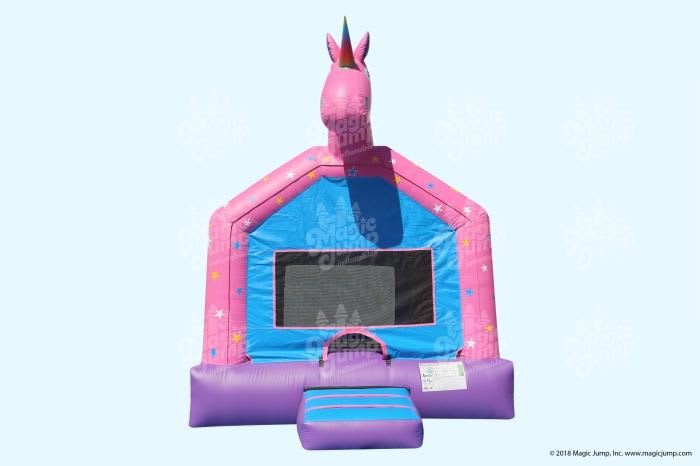 Spark everyone's fantasy and imagination with a Unicorn Bouncy Castle from Magic Jump. This ride is attractively designed with bright colors and decorated with stars and crescent moons, welcoming everyone into a dreamworld of fun and excitement. The Unicorn is a 13'x13' Bouncy Castle with plenty of space for up to five riders to safely enjoy bouncing, jumping, hopping, skipping, rolling and running around to their heart's content. It is approved for safety under New Jersey and Pennsylvania state guidelines for amusement rides and is crafted for maximum durability by Magic Jump. Rental operations are sure to benefit from including this Unicorn Bouncy Castle in their inventory. It is lightweight and compact for easy transport and setup in almost any yard. Little girls everywhere will absolutely love having a Unicorn for fun at their party. Be sure to have a Unicorn Bouncy Castle as a fresh look for the classic Bouncy Castle rentals, it is sure to satisfy.