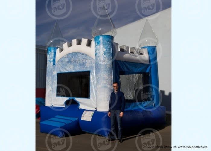 The Ice Castle is all-enclosed with safety nets and inflatable walls. It is also approved for safety under New Jersey and Pennsylvania state guidelines. This Bouncy Castle is spaciously designed at 13'x13' in size and can safely accommodate up to 5 riders. It is also available in a larger 15'x15' model offering more play space for larger parties. This product is a perfect start-up item for any rental business inventory. Bouncy Castles are fun and suitable for any occasion. The Ice Castle is a great way to encourage healthful physical activity and provide for hours of entertainment. Be sure to satisfy guests with an Ice Castle at your next event.